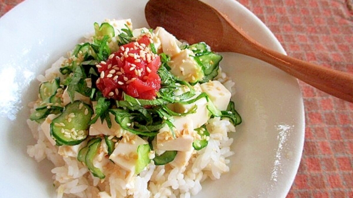 豆腐とキュウリの梅シソさっぱり丼 レシピ 作り方 By ちえ Sキッチン 楽天レシピ