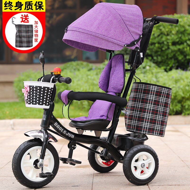 儿童三轮车脚踏自行车婴儿手推车双向可推可带人平衡车小孩推车1 3 6岁 宝宝遛娃神器 安全双刹 双向推行 免充气减震钛空轮 高贵紫 图片价格品牌报价 京东